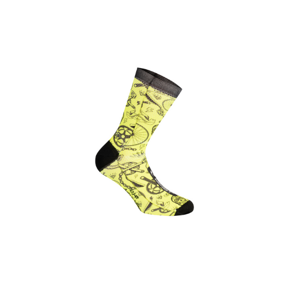 Una nueva línea de calcetines sublimados para aquellos que quieren seguir destacando incluso mientras pedalean. Hechos con 70% Meryl Skinlife, 5% Elastano y 25% de poliamida. Tratamiento antibacteriano.Fabricados 100% en Italia.